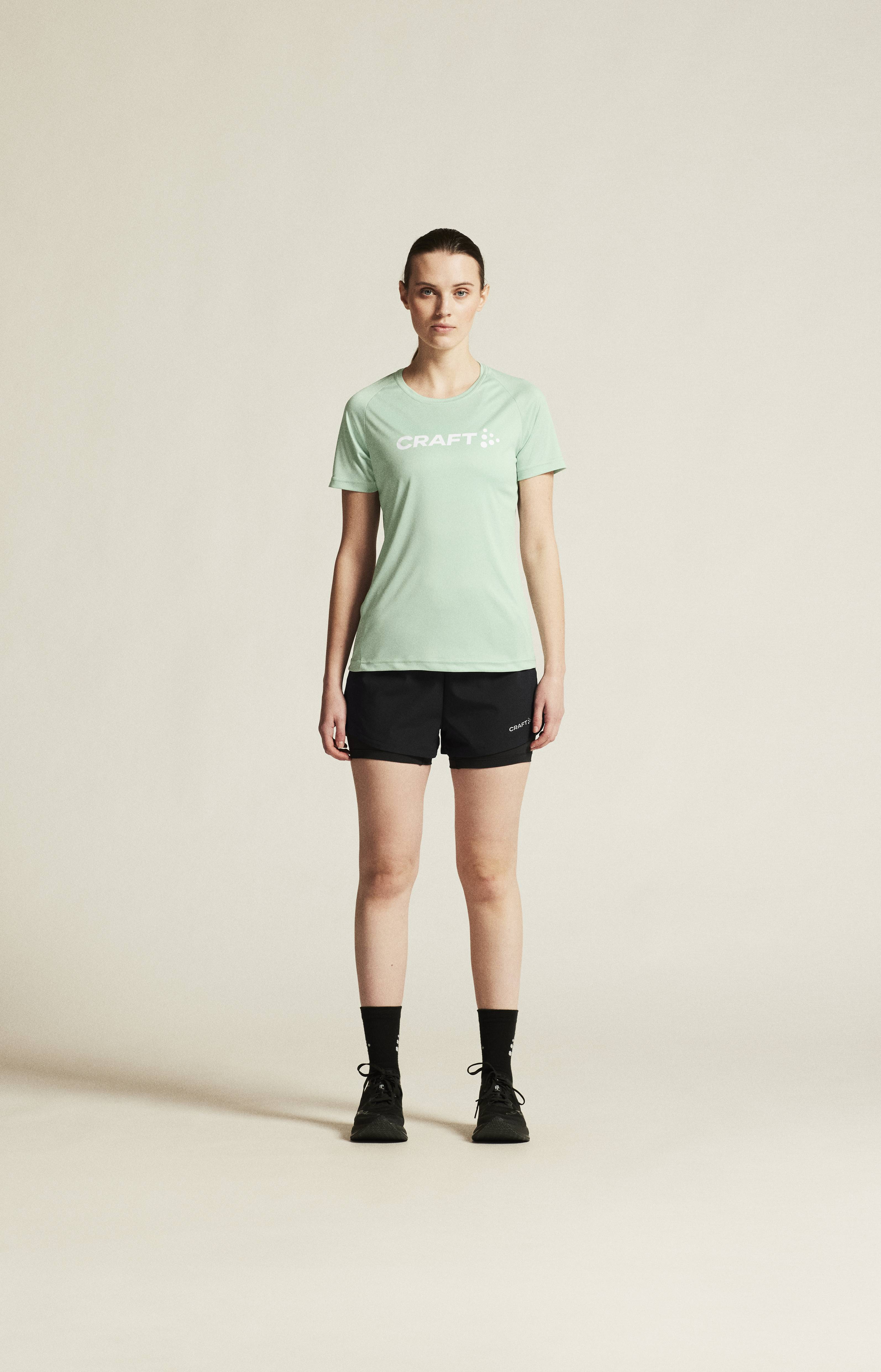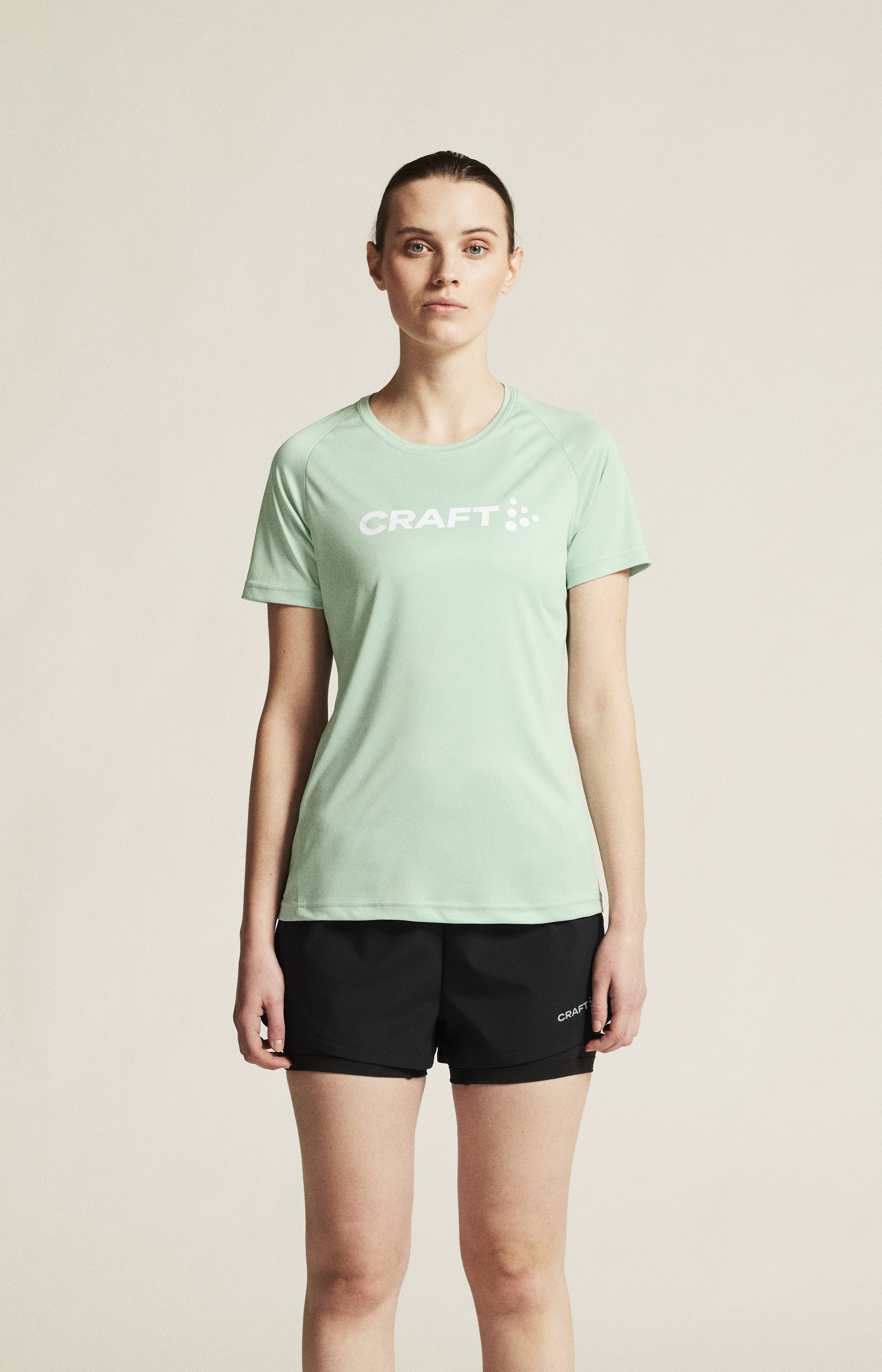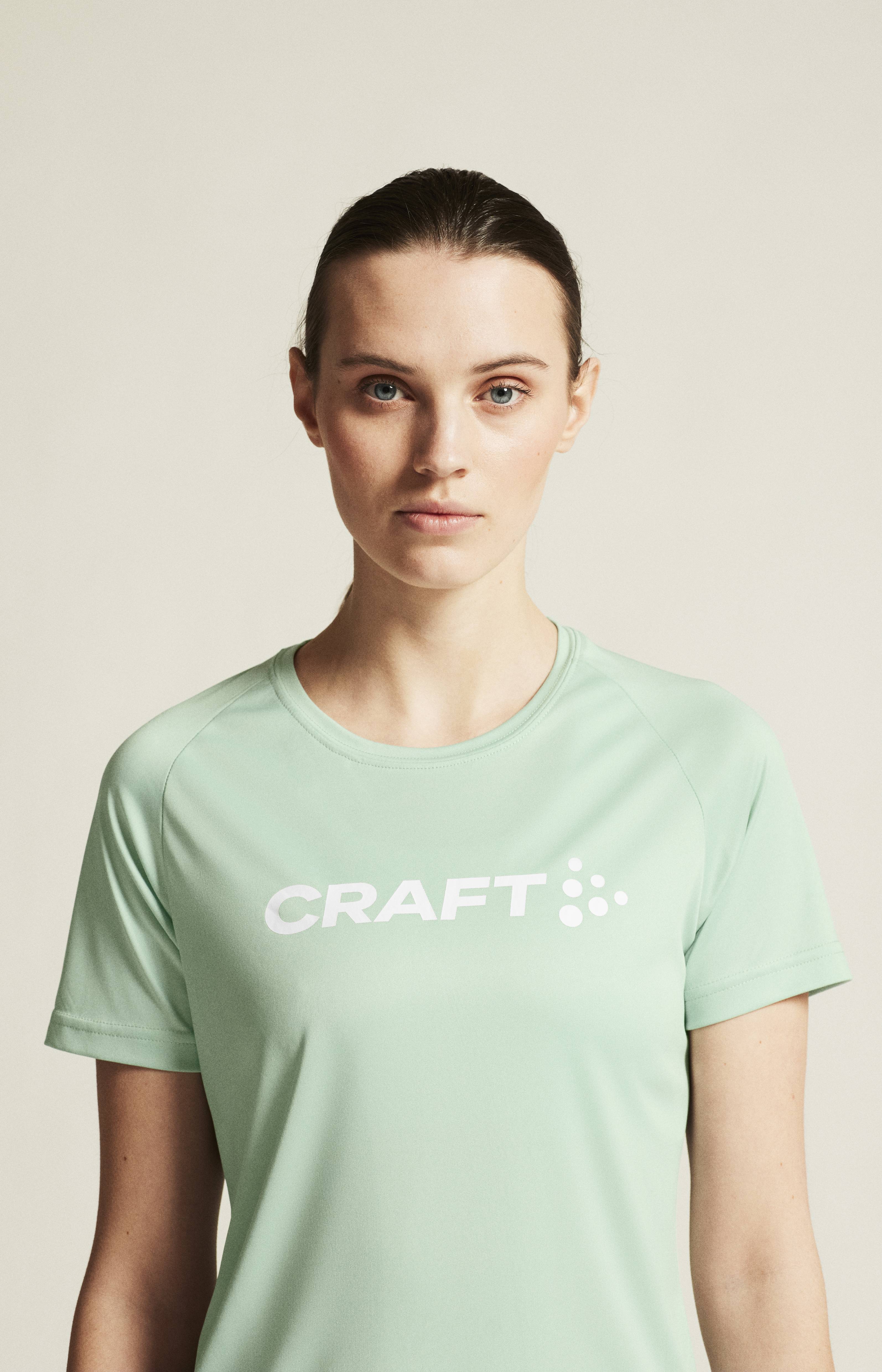 Dámské funkční triko CRAFT CORE Essence Logo (Unify Logo) vhodné pro širokou škálu sportovních aktivit nebo na volný čas. Materiál: 100% recyklovaný polyester - komfortní volnější střih - dobrý odvod potu a rychleschnoucí efekt - elastický materiál - spodní díl vykrojený do oblouku