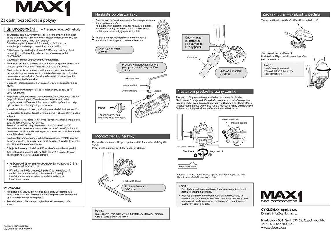 Pedály MAX1 SPD Tour jednostranné černé | |